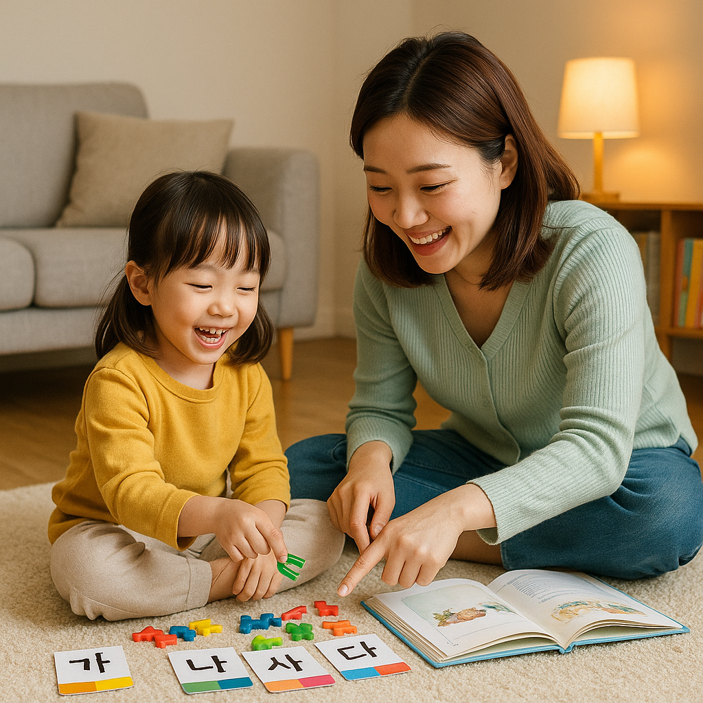 • 6~7세 — 초성/중성/종성 합치기, 반복구조 동화로 유창성 연습.