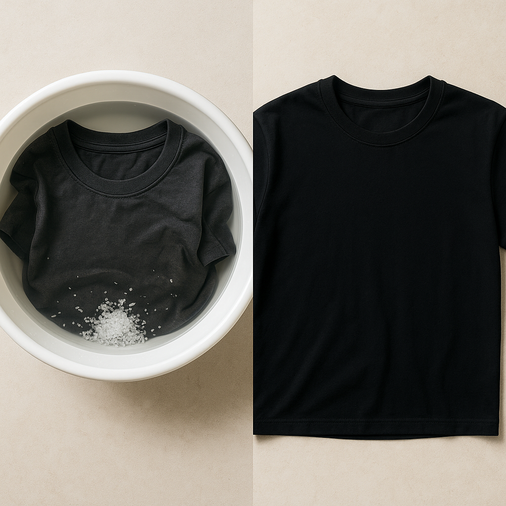 ✅ 진한색 옷 → 소금물(물 2L에 소금 2큰술)
